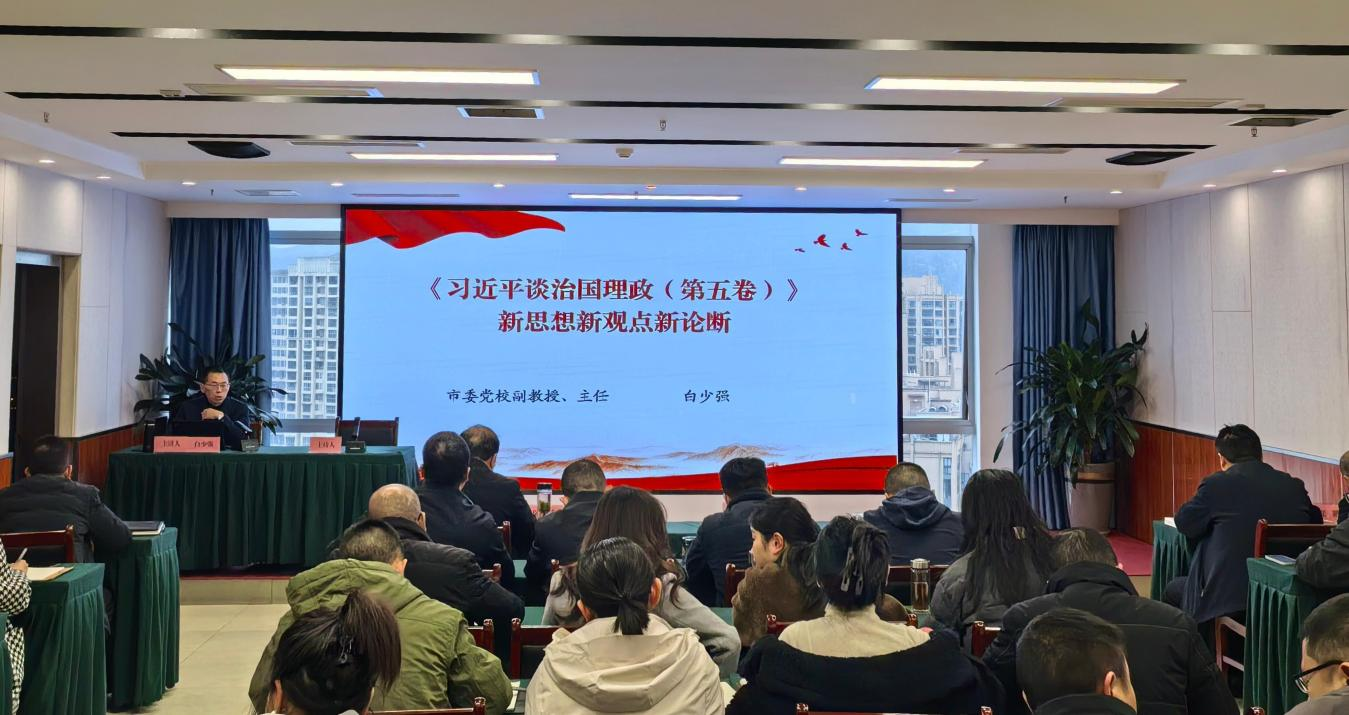 培训聚焦党的二十届四中全会精神和《习近平谈治国理政》第五卷的核心要义,特邀市委党校哲学教研部主任、广元市马克思主义理论研究中心主任、市委宣讲团成员白少强副教授进行专题授课。白少强副教授以《以历史主动精神继续把中国式现代化宏伟事业推向前进》和《〈习近平谈治国理政〉第五卷新思想新观点新论断解读》为题,系统阐释了党的二十届四中全会的重大意义、精神要义和习近平新时代中国特色社会主义思想的最新发展成果与实践要求,引导广大党员深刻把握中国式现代化的内涵特征与推进路径。