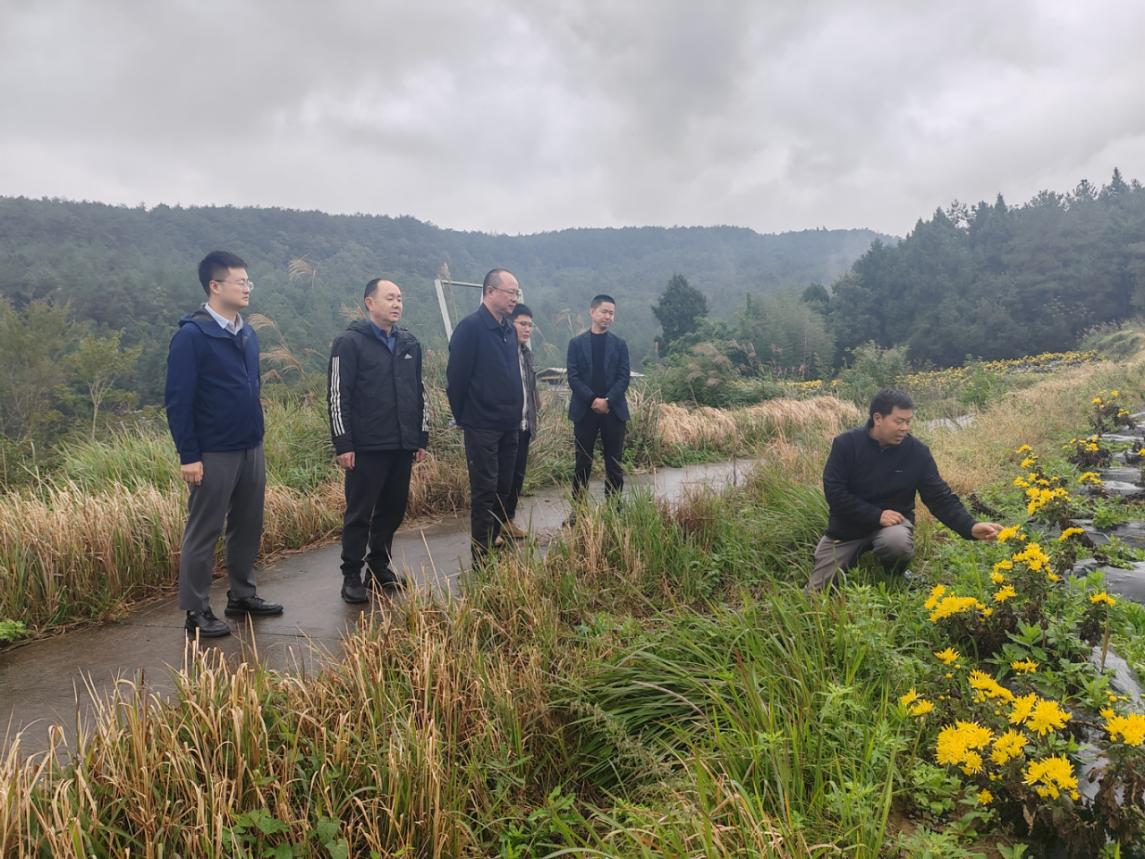在剑阁县盐店镇石笋村,张帆一行来到金丝皇菊产业园,深入田间地头,仔细查看金丝皇菊的长势,并与负责人深入交流,详细了解产业园的种植规模、田间管理、技术支撑、市场销路、经济效益以及带动村民增收的具体情况。对产业园当前呈现的良好发展态势以及集团驻村工作队取得的帮扶成效给予了充分肯定。