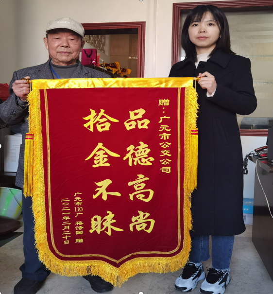 拾金不昧、助人为乐,是广元公交人良好职业素养和高尚品质的充分体现,随着公司“服务提升年”活动的深入开展,公司全体员工将继续牢固树立安全、优质服务意识,在平凡的工作岗位上切实践行“服务大众.奉献社会”的公交服务理念,传递社会正能量,赢得社会对公交企业的认同,充分展现城市公交窗口新形象。