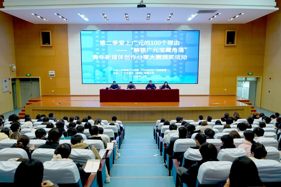 12月2日,“奋进‘十五五’青春挺膺担当”——“爱上广元的100个理由”短视频大赛颁奖典礼在四川信息职业技术学院雪峰校区举行。本次大赛由团市委、市文化广电旅游局主办,广茶集团协力,旨在通过青年视角展现广元生态之美、人文底蕴与发展活力,有效宣传城市形象。