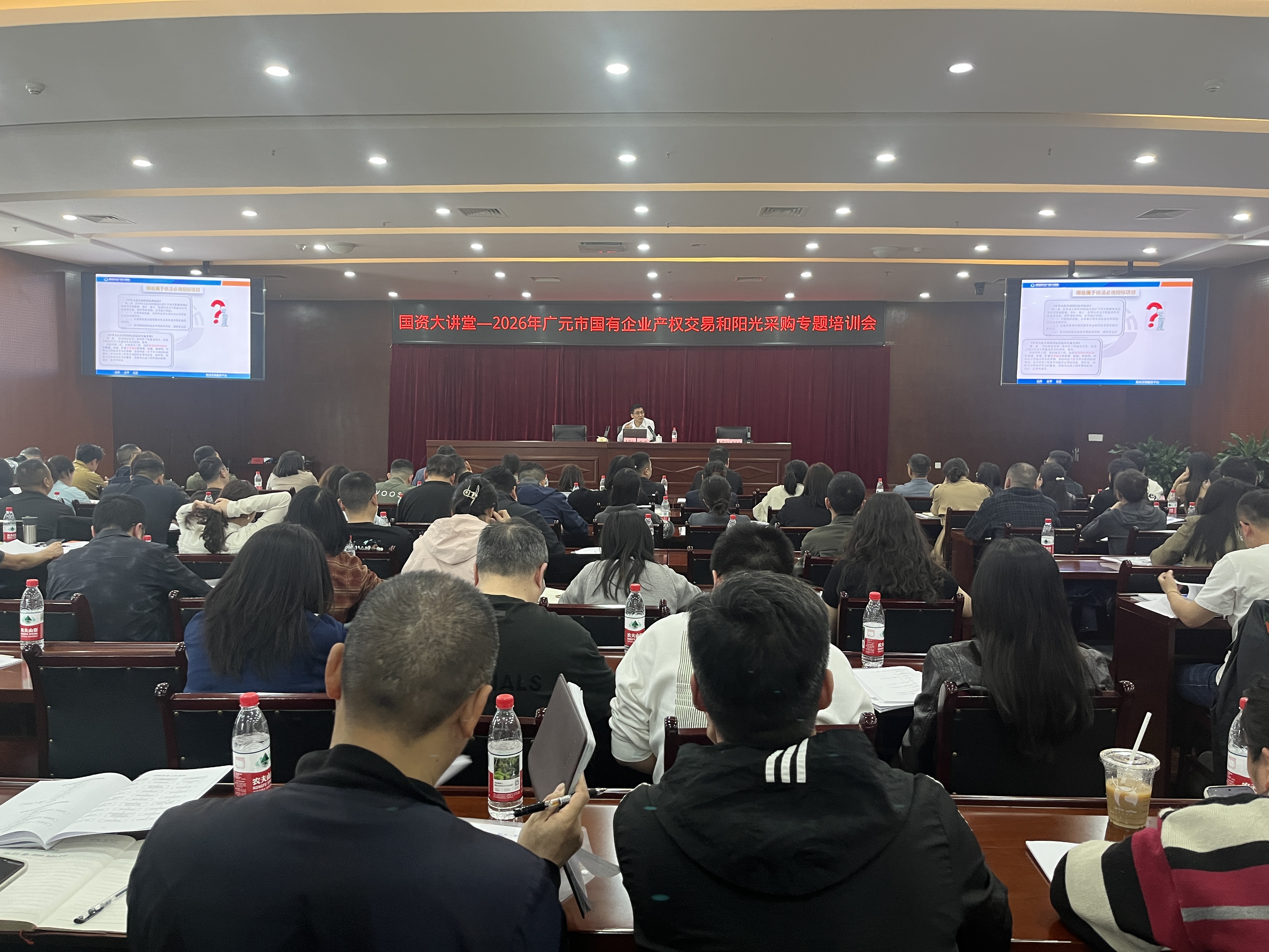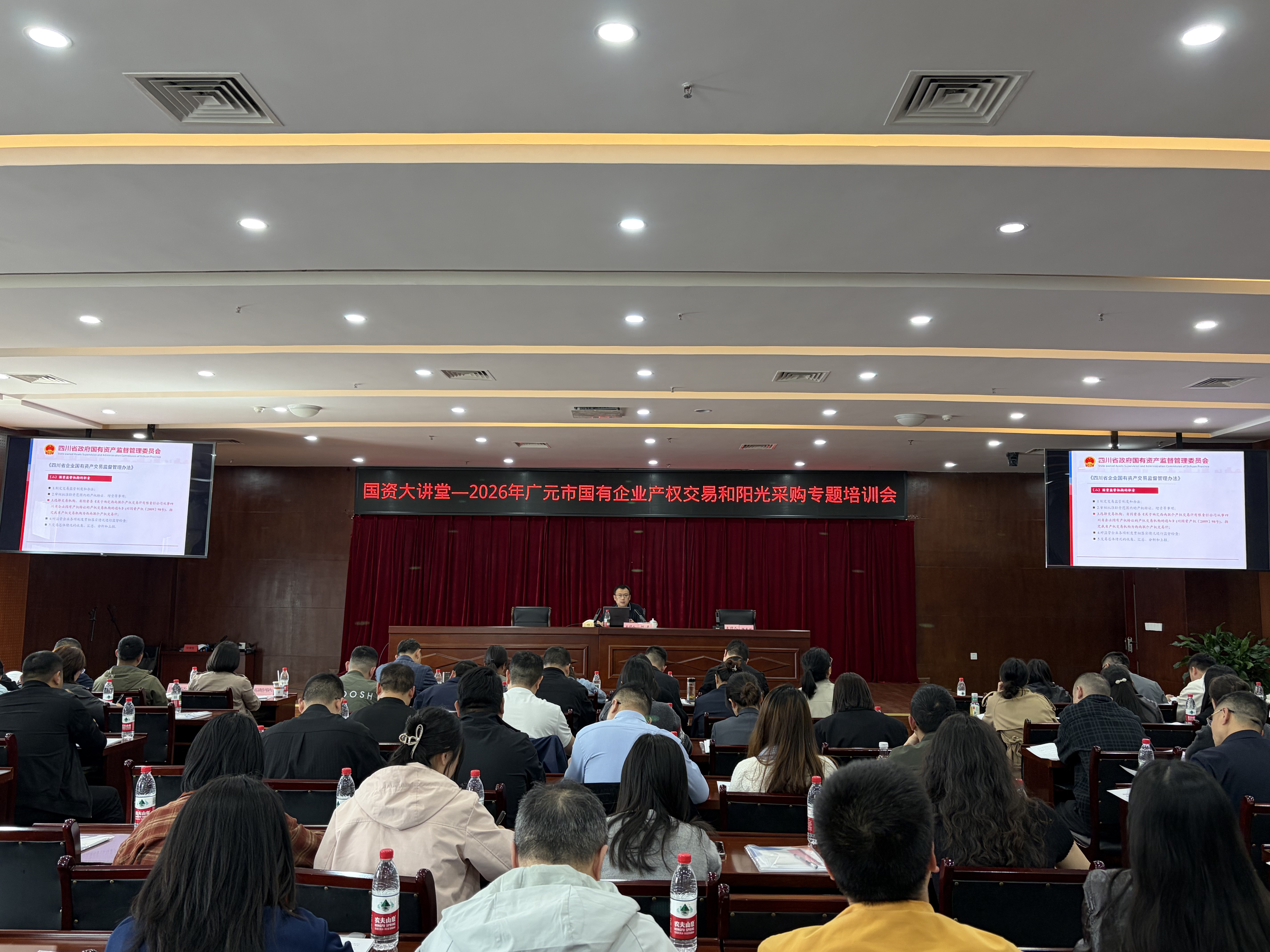 为深入贯彻落实国有资产监管相关政策,进一步规范全市国资国企产权交易与阳光采购行为,强化风险防控,保障国有资产安全规范高效流转,4月22日下午,市国资监管委举办2026年广元市国有企业产权交易和阳光采购“国资大讲堂”。培训会议由市国资监管委党委委员、副主任鲜东斌主持,市国资监管委相关科室(中心)负责人、市属国有企业及重要子公司相关负责人、各县(区)国资监管机构及重要企业相关负责人共计110余人现场参训。