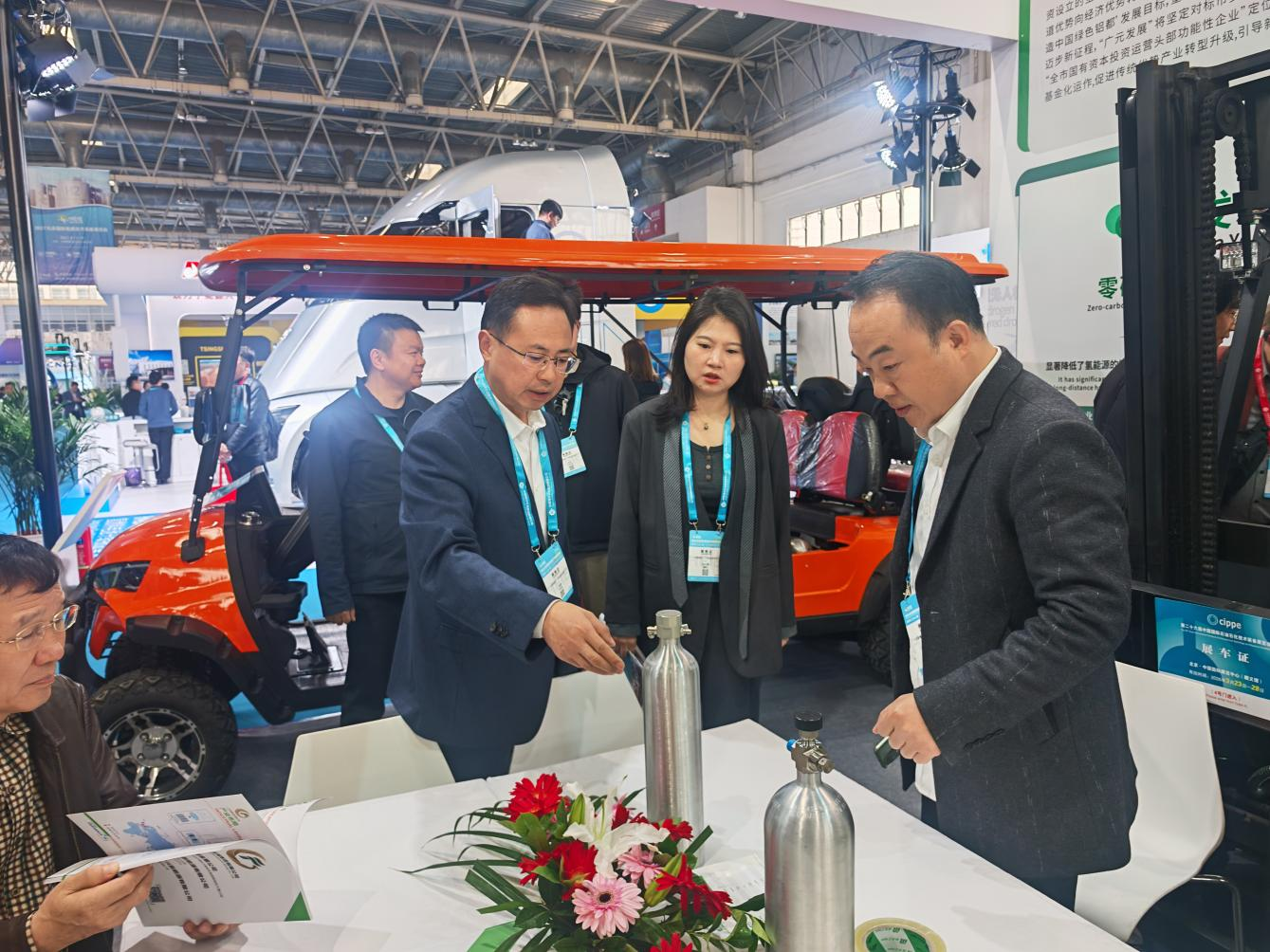 展会现场,广元发展集团重点展出了多规格低压高密度固态储氢瓶、氢动力两轮车、制氢加氢一体机,以及氢能观光车、氢能越野车、氢能叉车等系列化产品,其中近九成展品为行业独家首发。展会期间,韩国、俄罗斯、加拿大、克罗地亚等国家的境外客商,以及中石油、中铁宝桥集团等国内企事业单位纷纷驻足洽谈。韩国与俄罗斯的外商对氢能叉车、氢能观光车及氢能观光船表达了明确的采购意向;同时,广元发展集团还与郑州大学、青岛彭华新能源分别达成100辆氢能两轮车和5辆观光车的初步采购合作意向。凭借在固态储氢领域的技术积淀与成熟应用方案,广元发展集团获得了业内专家、合作伙伴及媒体的广泛关注与高度认可。