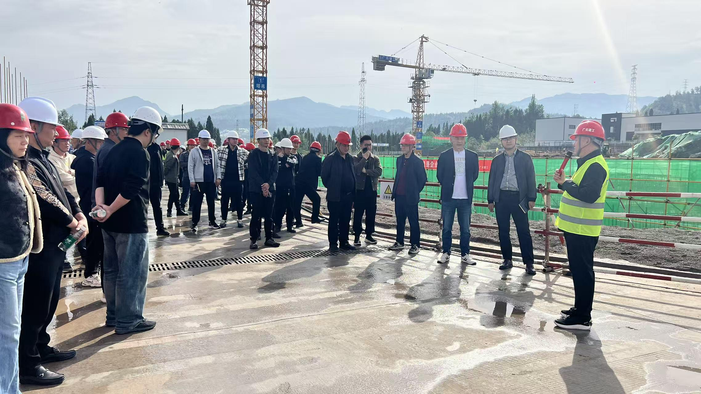 活动现场,项目经理围绕工程进度、安全文明施工、质量管控、标准化建设等内容进行了系统讲解。观摩团实地察看了施工作业区、材料堆放区、临电布置区等关键作业区域,直观了解围挡规范设置、扬尘治理、工艺标准、安全防护及资料编订等落实情况。
