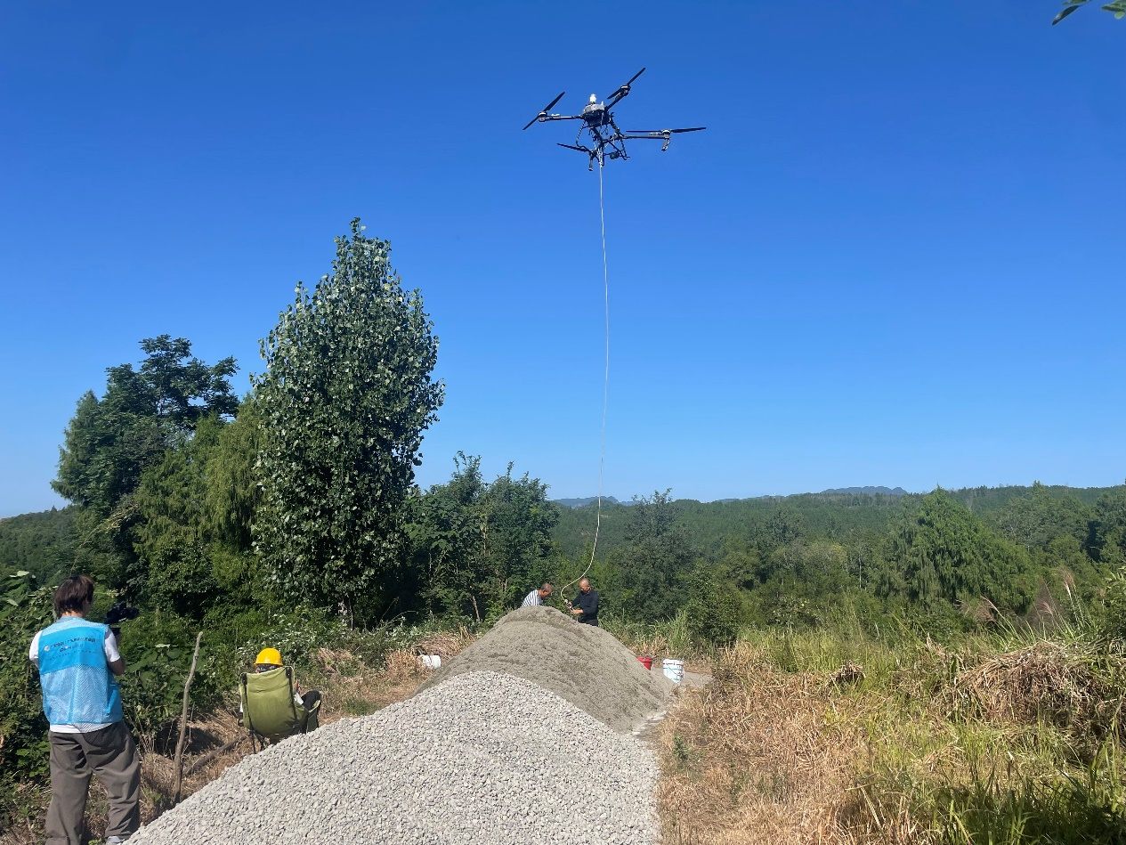 此次作业聚焦守垭村山地地形难题,采用重载无人机构建 “空中运输通道”,将总计25吨的塔材及土建物资精准投送至山顶作业点。相较于传统“人背马驮”模式,无人机单次吊运效率提升10倍以上,原本需一周的运输任务仅用2天即可完成,人力成本降低超70%。作业过程中,无人机依托精准定位系统与避障技术,在复杂山林环境实现“点对点” 投送,全程未破坏植被,践行了“零生态扰动”施工理念,此次首秀不仅破解了山区基建运输瓶颈,更验证了“低空 + 通信基建”模式的可行性,为公司拓展后续物资吊运业务奠定基础。