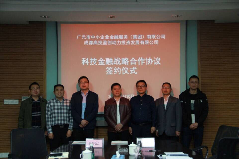 3月30日,在成都高新区盈创动力大厦,市金服集团副总经理罗志林与成都盈创动力公司副总经理杨超签订了《科技金融服务战略合作协议》,集团总经理张绍海、盈创动力总经理黄悦共同鉴证了签字仪式。这是继双方在创新融资基金投资、共建盈创动力科技金融服务平台广元站后,开启了业务深度合作的新篇章。