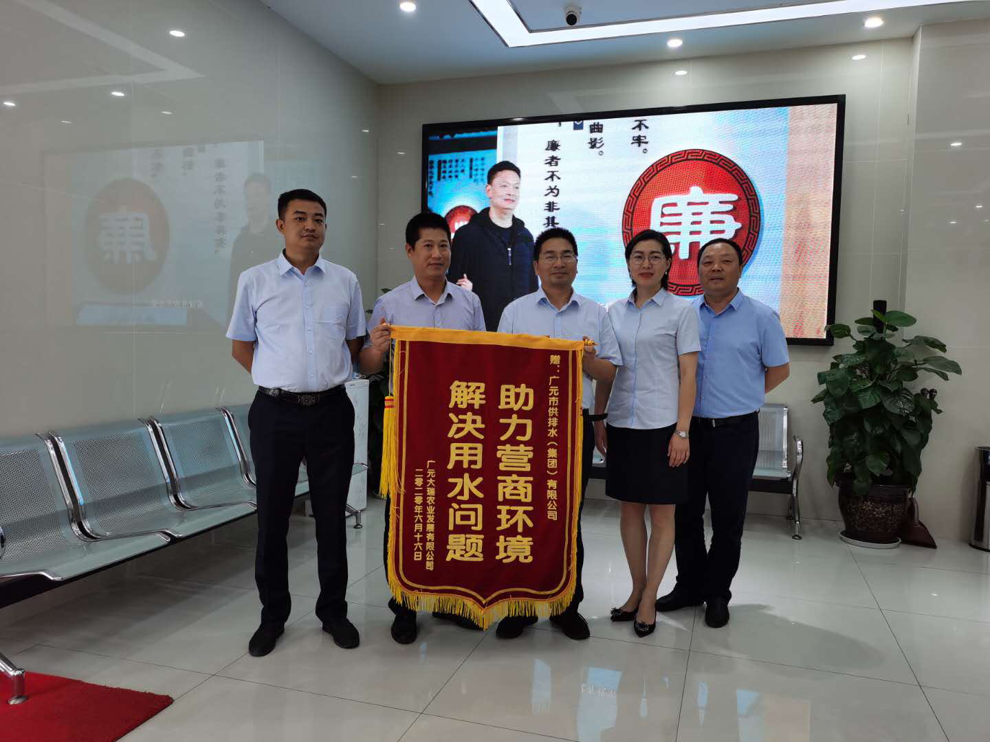 7月2日,川北农产品批发中心向市供排水集团送来“助力营商环境,解决用水问题”的感谢锦旗,这是川北农产品批发中心对市供排水集团提供优质供水服务、解决用水问题以确保按时开业经营的衷心感谢。