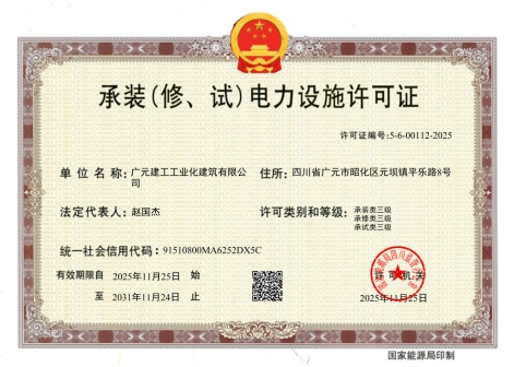 近日,广元建工工业化建筑有限公司成功取得国家能源局核发的承装(修、试)电力设施许可证(三级)。该资质涵盖电力设施安装、维修与试验三大类别,允许公司承接35千伏及以下电压等级的电力工程项目。 此项资质的获得,标志着工业化公司有资格、有能力进入电力工程市场,有效突破行业准入与招投标资格限制,进一步增强企业综合竞争力与市场信誉。下一步,工业化公司将以此为契机,加快推进业务多元化布局,严格规范施工管理,拓展电力市场业务,将资质优势切实转化为发展优势。